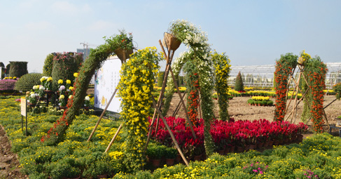 開(kāi)封市大廣五色草造型有限公司于開(kāi)封市祥符區(qū)陳留鎮(zhèn)尹莊村,現(xiàn)擁有菊花品種1500個(gè)。年生產(chǎn)菊花種苗500萬(wàn)株,生產(chǎn)各種商品菊花100萬(wàn)盆,有獨(dú)頭、多頭、九頭、十六頭盆栽菊,生產(chǎn)各種造型藝菊:塔菊、盤(pán)龍菊、臥龍菊、孔雀開(kāi)屏菊、大立菊、花籃菊、菊球、雄獅菊、龍鳳呈祥。松鶴延年,華表、菊柱、懸崖菊、國(guó)慶節(jié)開(kāi)花的盆栽大菊花,及各種造型藝菊。